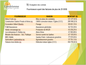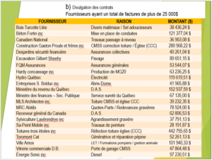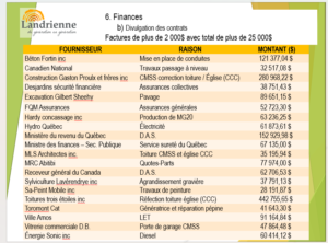 Le Code Municipal exige que chaque municipalité publie sur son site internet la liste de tous les contrats comportant une dépense de plus de 2 000$ avec un même contractant lorsque l’ensemble de ces contrats comporte une dépense totale annuelle de plus